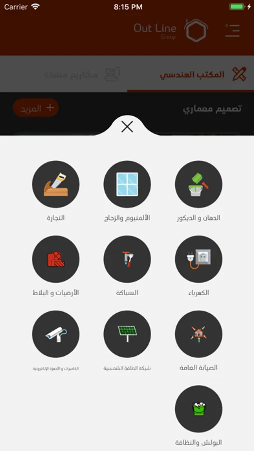 التطبيق لمكتب اوت لاين للهندسة والادارة، الذي يضم نخبة من المهندسين أصحاب خبرة في مختلف التخصصات الهندسية و التشطيبات ومجالات الادارة، لتقديم نمط جديد من الاستشارات الهندسية و ادارة المشاريع.