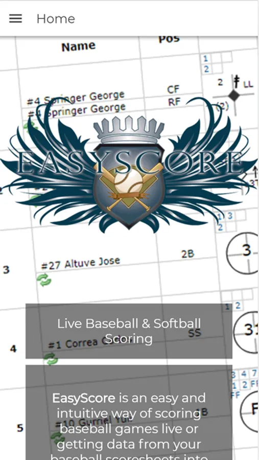 EasyScore is an easy and intuitive way of scoring baseball games live or getting data from your baseball scoresheets into your computer. Easyscore automatically computes box scores, game logs and game and season statistics, based on data you entered.
