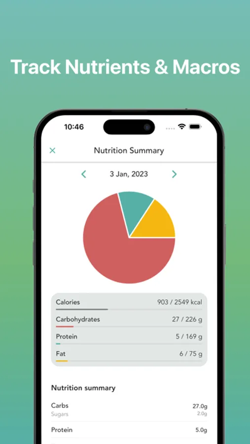 – Nutrition tracker and food diary for all meals