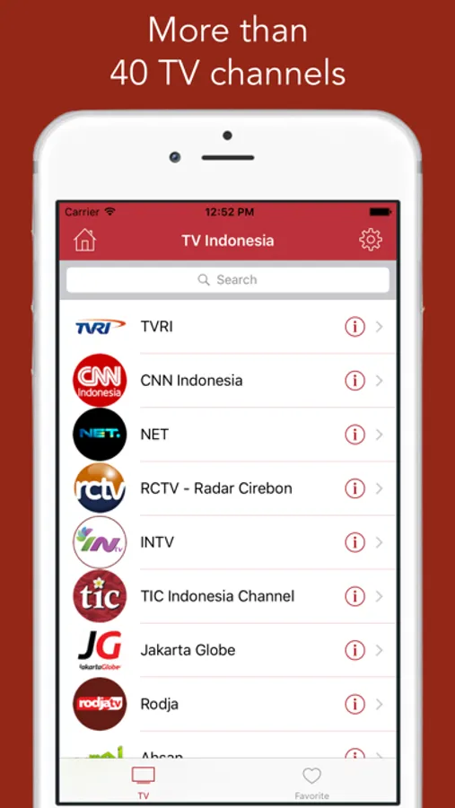 TV Indonesia adalah aplikasi menakjubkan yang memungkinkan Anda menonton berita dan hiburan langsung terkini. Ini adalah aplikasi gratis yang memberi Anda kesempatan sempurna untuk menonton siaran langsung televisi Indonesia di seluruh dunia. Anda dapat langsung mengakses saluran televisi favorit Anda dan menonton beragam berita, film, acara bincang-bincang, program dll. Dari iPhone, iPad atau iPod Touch Anda di mana saja dan kapan saja.