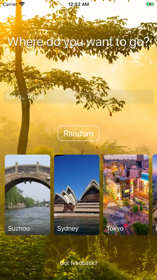 - Explore cities through search or the random button using Google's Autocomplete and Search Request APIs