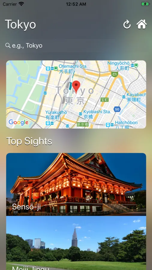 - Scroll through beautiful pictures of top points of interest and top eateries for each city using Google and Yelp APIs