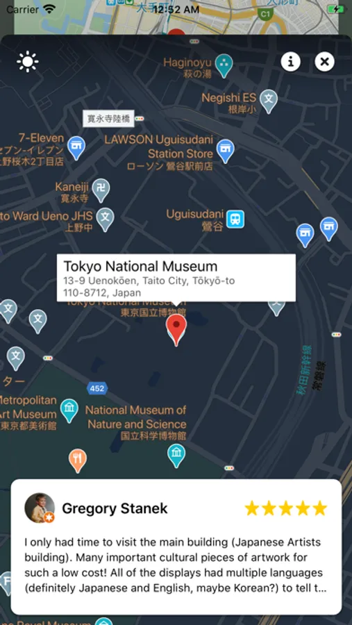 - Read reviews for specific points of interest and tap to redirect to the reviewer's page on Google Maps