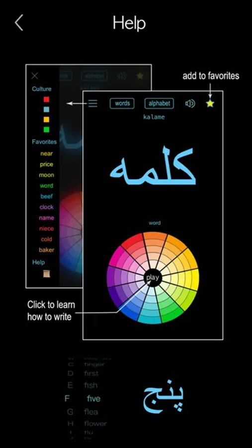 You can select the word in alphabetical order (English meanings) by clicking “words” in the menu bar. Basic everyday Persian words!