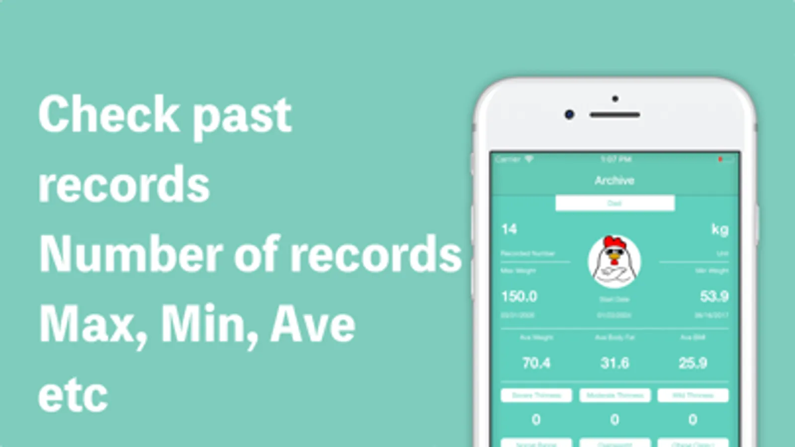 · Archive function that can list past records such as record number, maximum body weight, minimum weight, average weight, average fat percentage