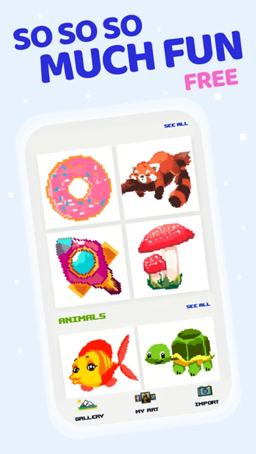 It's time to express your artistic side - even if your drawing skills leave much to be desired. Pixeland - color by number lets you create your very own digital masterpieces - no pencils or paper needed. Take a few minutes to enjoy this colorful diversion and stress relief no matter where you are.