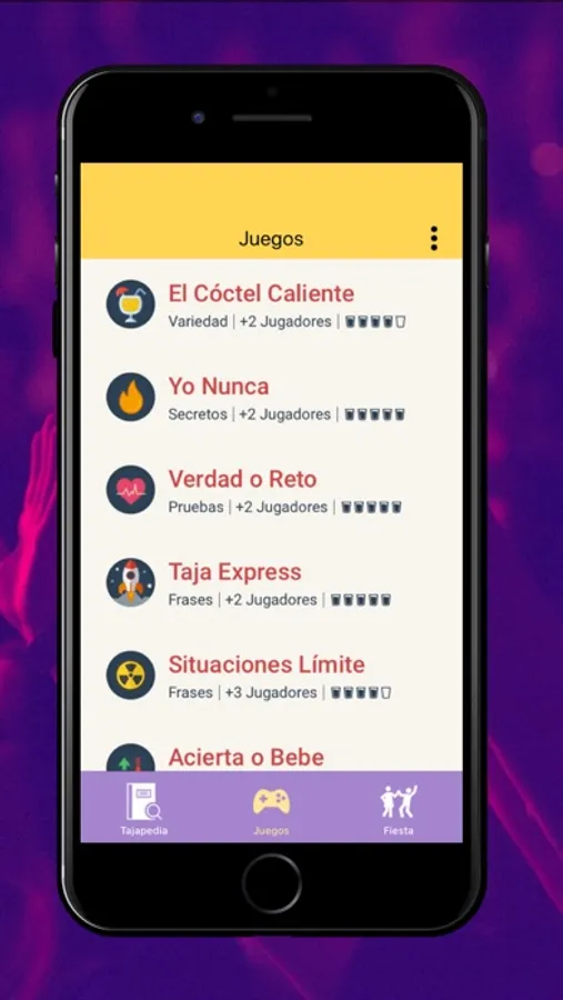 Enjoy a lot of drinking games on your phone, you can have them always with you and take them to the party. Get the Swiss knife of the party man! You will find games with dices, cards, and many other types, and you can play with up to 8 friends!