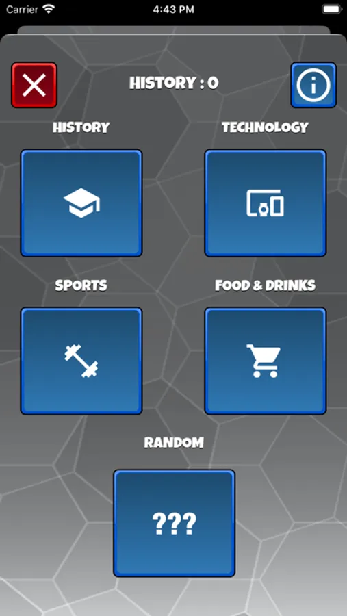 Use your knowledge and conquer your way through the 1900’s with Trivia Conquest! Play your way through each decade of the 1900’s until you unlock the next level. Choose from 4 categories: History, Technology and Inventions, Food & Drinks, and Sports. Once you reach 70% total correct the next level will unlock.