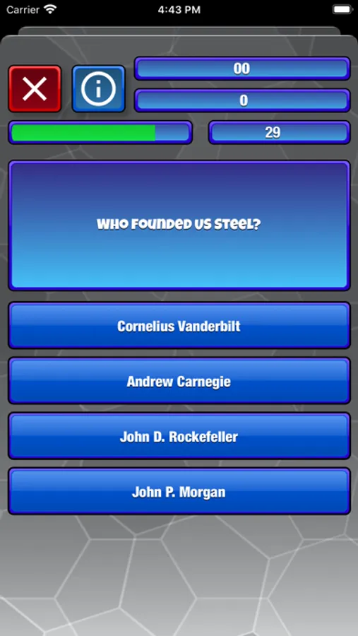 Quick Play: Choose from 5 categories and test you knowledge of major events of the 1900’s. You have 30 seconds to answer as many questions and each question is worth 100 points. Answer correctly and add 1 second to the clock.