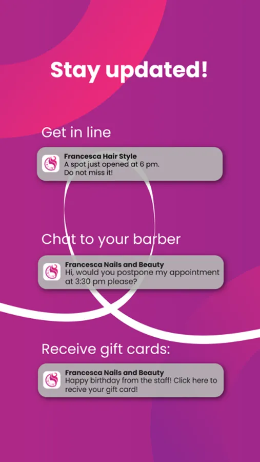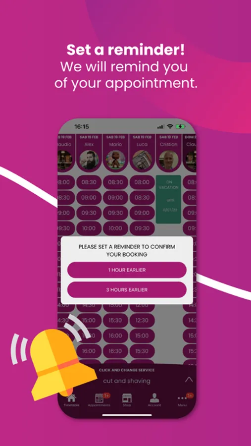 download the app, sign up, choose the most convenient day and time for you, select a service and confirm your appointment. A reminder notification will remind you of your appointment.