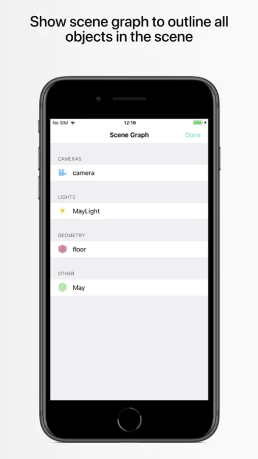 • Display the scene graph of your scene to see what objects are present (grouped by their categories and parent-child relationships)