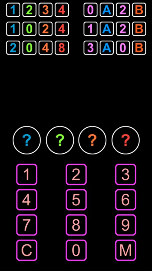 Player can test 4 numbers one time and the game will return the result: xA yB,