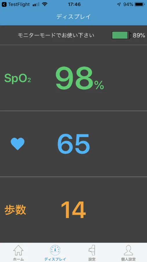 ◆リングO2で測定中に表示されている値をiPhone/iPadで見ることが出来ます。