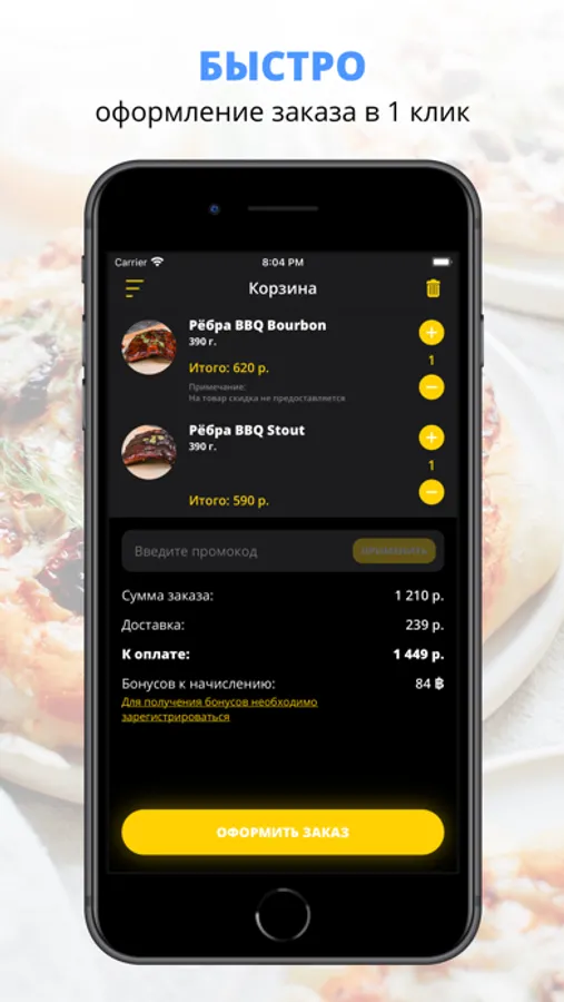 Скачивайте приложение, оформляйте заказ и наслаждайтесь любимой едой, где бы Вы ни были! Приятного аппетита!