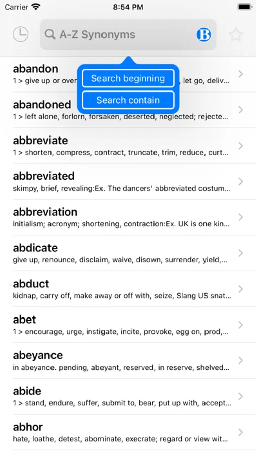 - Easy word searching ( begin or contain)