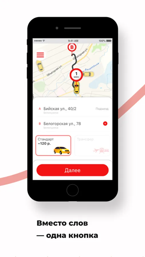 Откройте приложение, укажите адрес и закажите такси, нажав на одну кнопку.