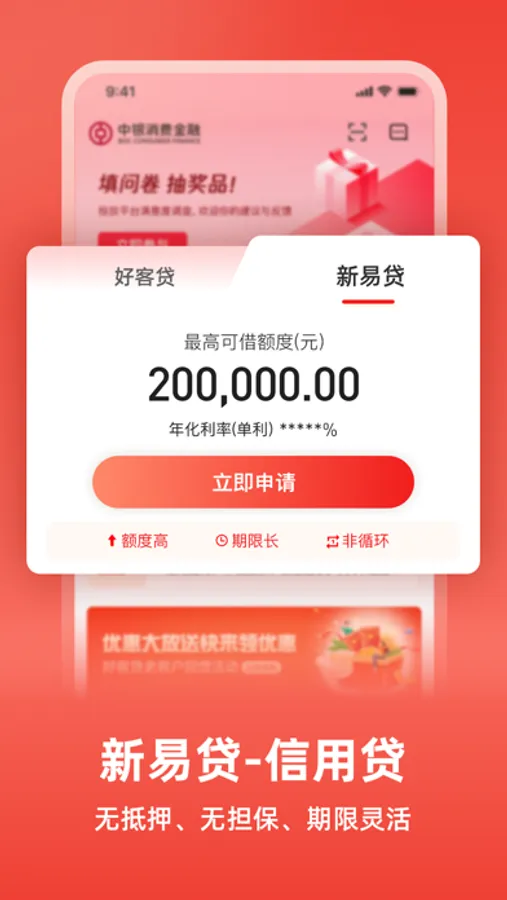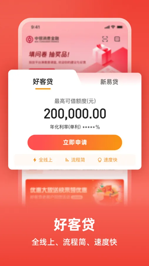 此App为中银消费金融有限公司唯一官方App,请您切勿通过微信、QQ、短消息等附带的下载链接盲目下载非正规应用市场发布的App。