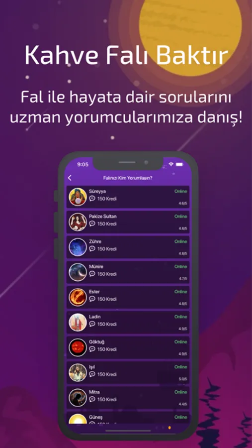 - İsterseniz her 24 saatte bir size verilen ücretsiz kahve falı hakkı ile falınıza ücretsiz olarak, isterseniz uygulama içi kredi paketi satın alarak seçtiğiniz falcıya fotoğraflarınızı göndererek ücretli olarak baktırabilirsiniz.