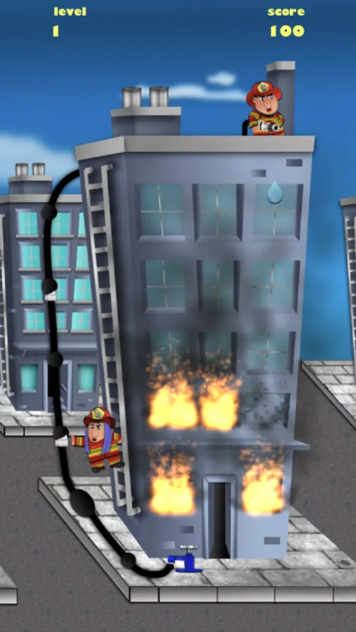 Second spot is the firefighter responsible for Water Pump. Try to stay here as long as possible so that the water arrives in a fluid and constant way to the rooftop firefighter, but observe the drops that are produced, some are bigger and will break the hose. Just slide your finguer up or down to manage this firefighter pumping the water and to avoid that the hose break or go to repair it.