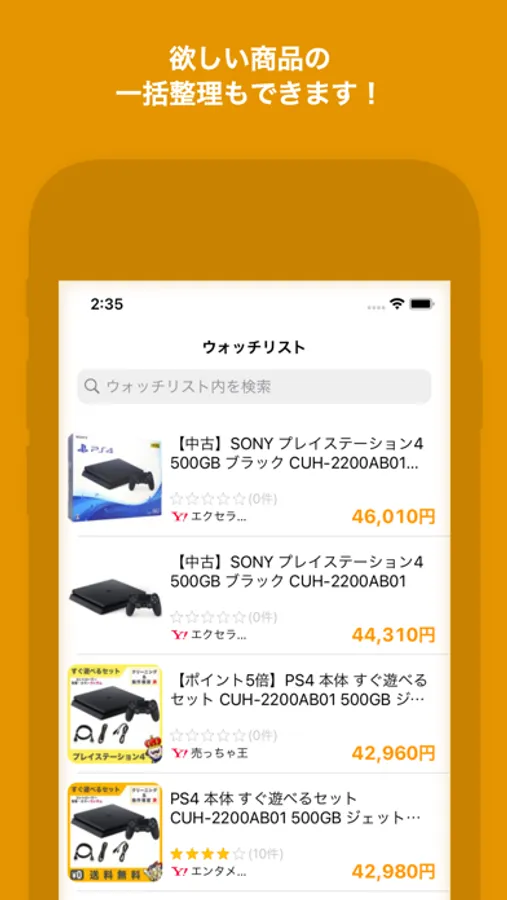 楽天市場、Yahoo!ショッピング、Amazonからの商品を検索して安い順に並べて表示します。選択していただければ、該当のサイトでお買い物もできます。