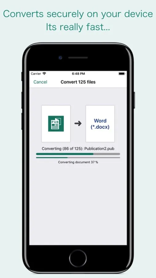 Note: “PUB Converter” is standalone application running natively to open and convert Microsoft Publisher documents (.pub) securely right on your iOS device.