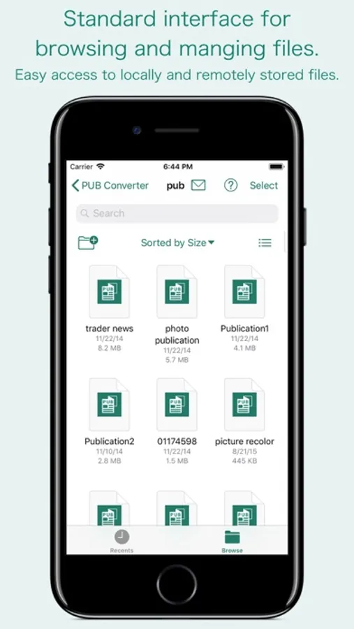 - Browse, find and sort documents to help you locate the document you want. Tap the PUB file that you want to open.