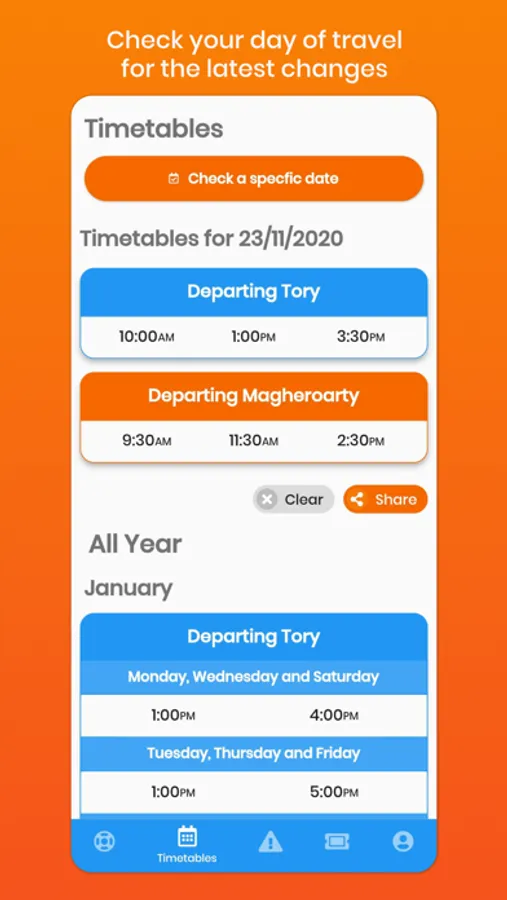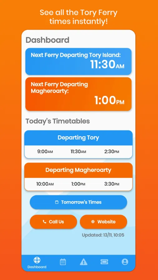 • Viewing the next ferry times, from Tory and Magheroarty.
