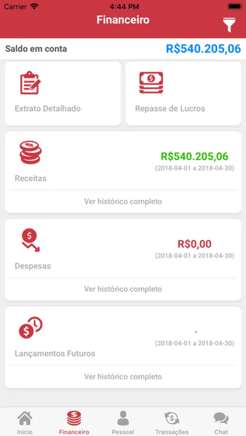 - Extrato Financeiro (Receitas, Despesas, Repasses)