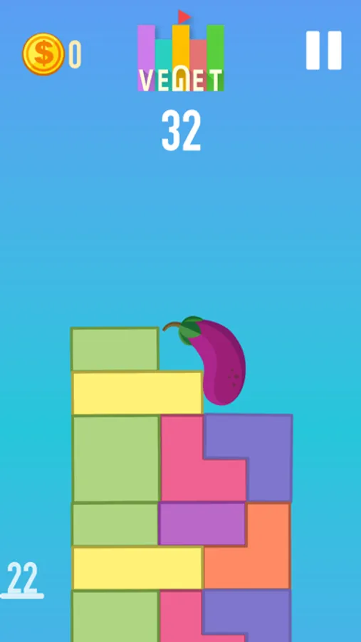 The main rule: destroy blocks and balance to collect coins. The game continues while your vegetable stays on the tower.