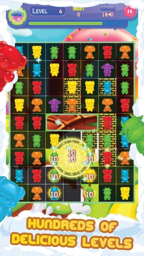 - Connect 4 or more candies to create special delicious surprises and bear crawl your way to a new level.