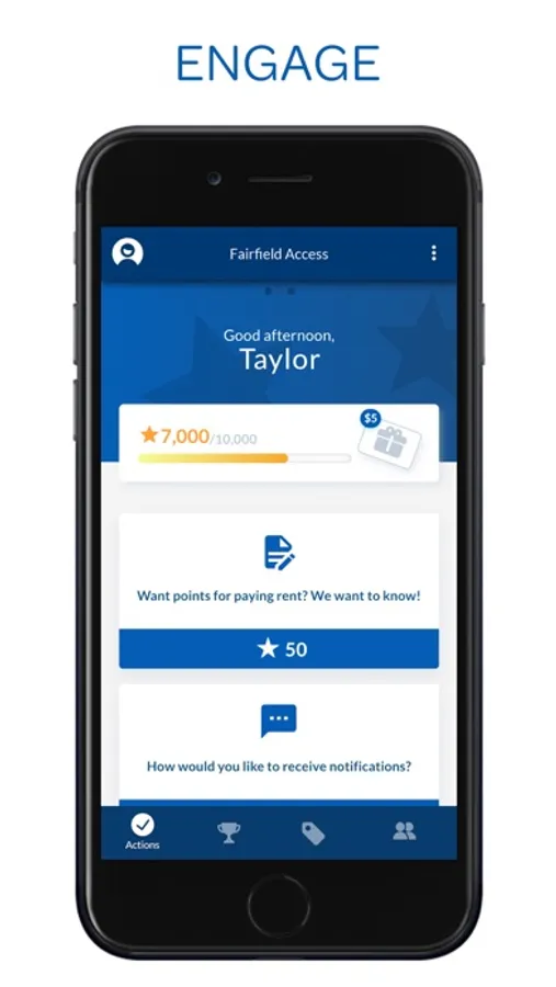 Actions include things you’re already doing like sharing about your apartment on social media, referring friends, renewing your lease, filling out surveys, sharing feedback…even paying rent online.
