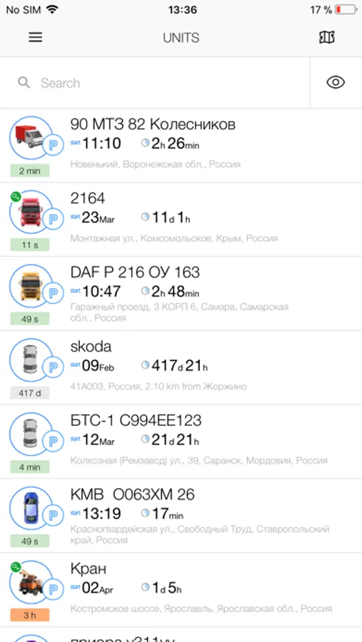 Режим слежения. Контролируйте местонахождение и показатели отдельных