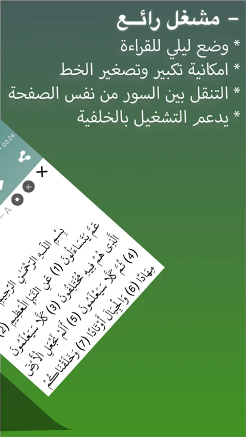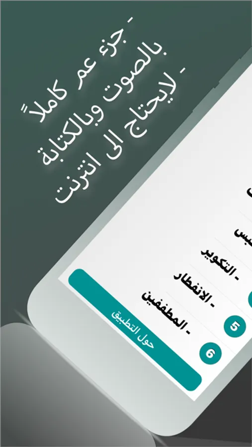 تطبيق جزء عم بدون نت وبالصوت بعض المميزات :