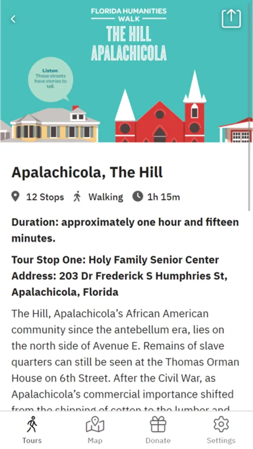 Florida Stories' walking tours allow you to delve behind the scenes of your favorite Florida towns to learn more about their history, culture, and architecture. You can discover the uniqueness of Florida at your own pace and on your own schedule. Each walking tour is GPS enabled and includes audio narration and photos providing you with engaging content at each tour stop.