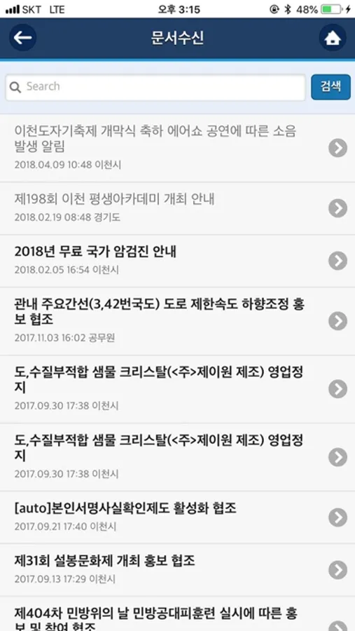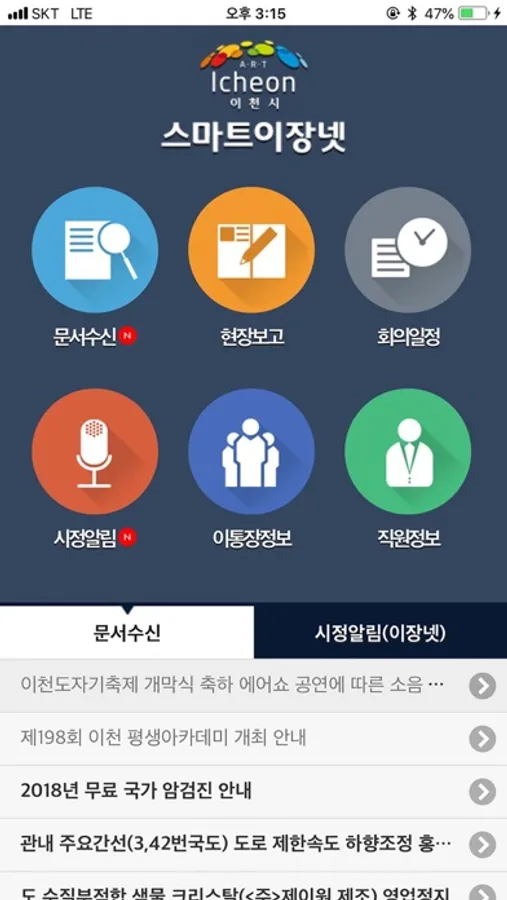 - 각 읍면동 또는 리통별로 알림 및 첨부파일들을 확인할 수 있습니다.