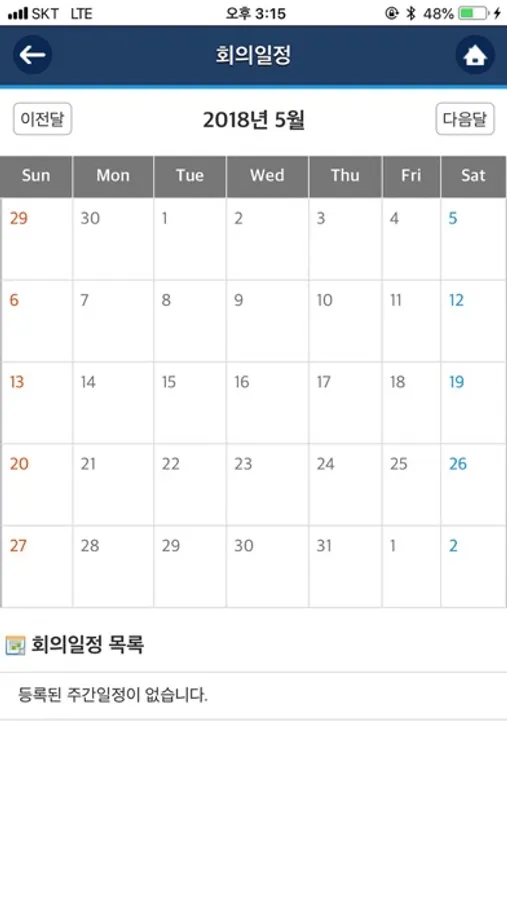 - 월별로 회의내용들을 확인할 수 있고, 회의에 참여 또는 미참여를 전송하여 회의에 필요한 내용들을 미리 준비할 수 있습니다.