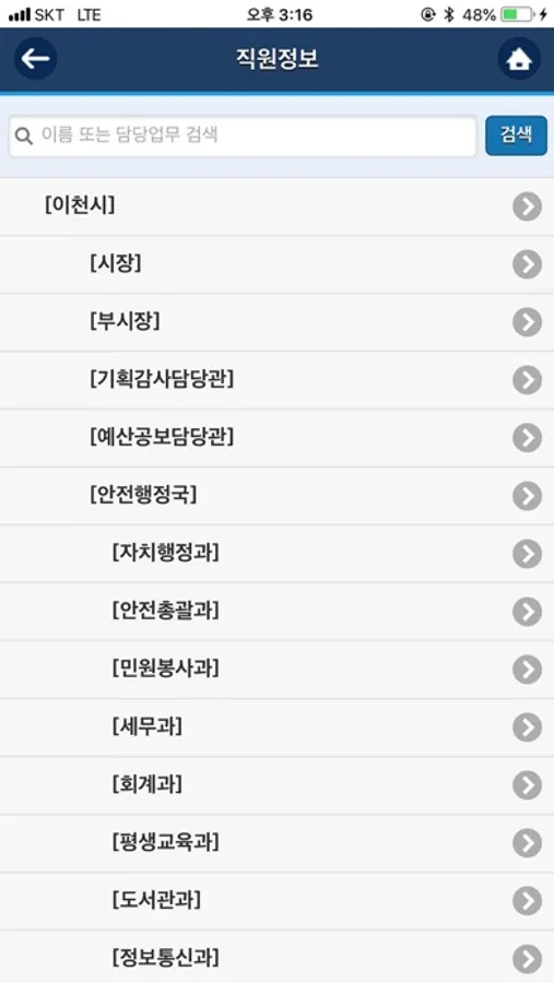- 각 마을을 담당하는 직원의 정보를 확인할 수 있으며 직접 통화할 수 있는 연락처가 제공됩니다.