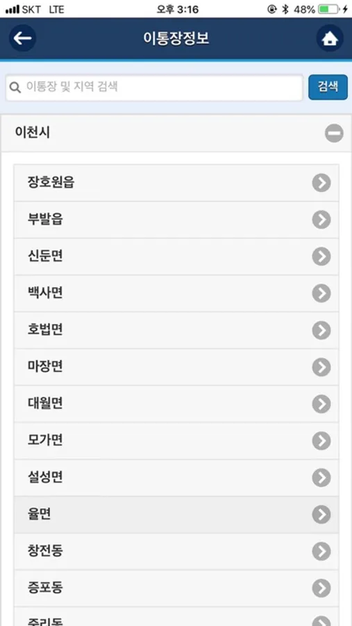 - 각 마을 이장님들의 정보를 확인할 수 있으며 직접 통화할 수 있는 연락처가 제공됩니다.