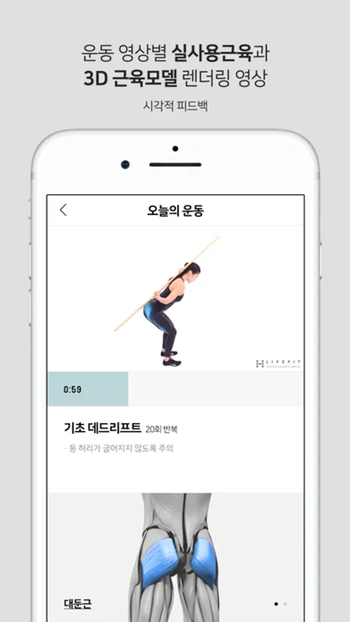 - 각 운동 별 사용 근육을 운동 영상에 3D 근육 렌더링을 활용한 시각적 피드백 제공