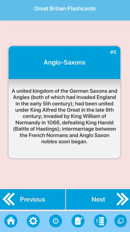 Study and learn about history of the world,covering early british history to modern times, using simple and effective flashcards screen.