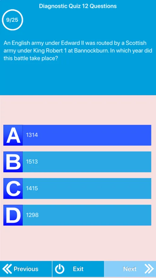 - There are 2 quiz mode. Diagnostic Quiz and Practice Quiz