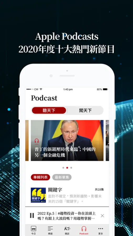● 聽天下Podcast:經濟學人每週導讀,總編輯對話決策者,封面故事幕後製作全揭露。