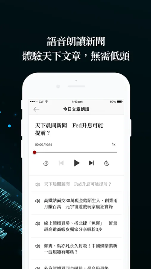 ● AI語音朗讀:天下AI機器人「Sky」每天念給你聽,讓你用零碎時間即可輕鬆聽遍天下事!