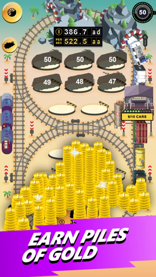 Train Merger has a very simple gameplay: buy, merge and manage your trains, so you can earn gold and unlock over 60 train models. Upgrade your buildings for more profit and complete the Ultimate Challenge - constructing The Golden Express!