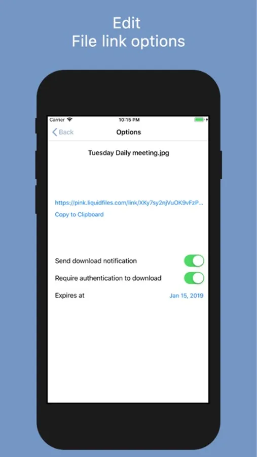 • Copy existing FileLinks to easily send Large Files Securely in other IOS apps such as Mail or Messenger.