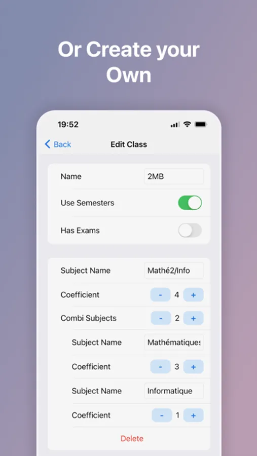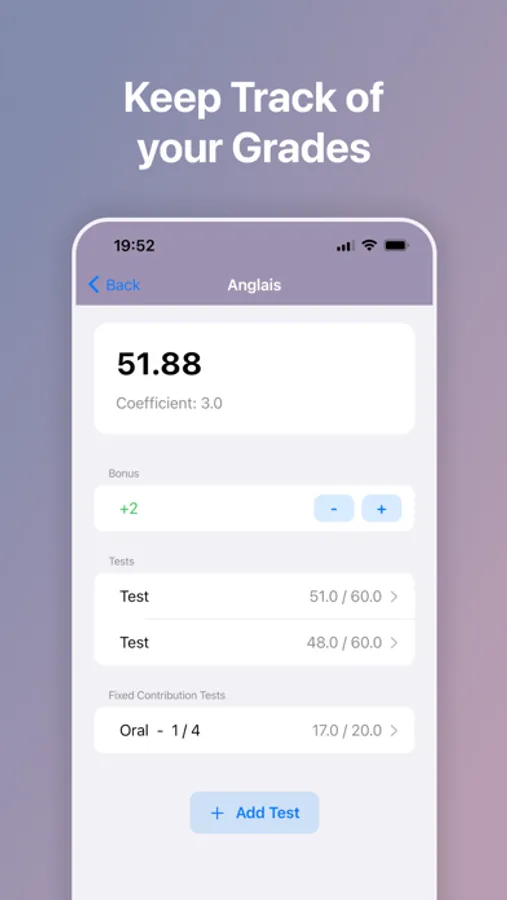 Never forget what you got on a test 3 months ago with Datz!. This app allows you to easily keep track of your grades and bonus points and calculate what your final result will be. Seeing your grades allows you to focus on the subjects needing work. You can choose your class from a preset, or create your own, so you should feel right at home.
