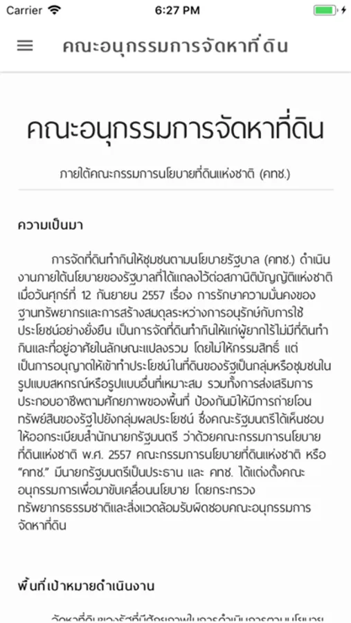 การจัดที่ดินทำกินให้ชุมชนตามนโยบายรัฐบาล (คทช.) ดำเนินงานภายใต้นโยบายของรัฐบาลที่ได้แถลงไว้ต่อสภานิติบัญญัติแห่งชาติ เมื่อวันศุกร์ที่ 12 กันยายน 2557 เรื่อง การรักษาความมั่นคงของฐานทรัพยากรและการสร้างสมดุลระหว่างการอนุรักษ์กับการใช้ประโยชน์อย่างยั่งยืน เป็นการจัดที่ดินทำกินให้แก่ผู้ยากไร้ไม่มีที่ดินทำกินและที่อยู่อาศัยในลักษณะแปลงรวม โดยไม่ให้กรรมสิทธิ์ แต่เป็นการอนุญาตให้เข้าทำประโยชน์ในที่ดินของรัฐเป็นกลุ่มหรือชุมชนในรูปแบบสหกรณ์หรือรูปแบบอื่นที่เหมาะสม รวมทั้งการส่งเสริมการประกอบอาชีพตามศักยภาพของพื้นที่ ป้องกันมิให้มีการถ่ายโอนทรัพย์สินของรัฐไปยังกลุ่มผลประโยชน์ ซึ่งคณะรัฐมนตรีได้เห็นชอบให้ออกระเบียบสำนักนายกรัฐมนตรี ว่าด้วยคณะกรรมการนโยบายที่ดินแห่งชาติ พ.ศ. 2557 คณะกรรมการนโยบายที่ดินแห่งชาติ หรือ “คทช.” มีนายกรัฐมนตรีเป็นประธาน และ คทช. ได้แต่งตั้งคณะอนุกรรมการเพื่อมาขับเคลื่อนนโยบาย โดยกระทรวงทรัพยากรธรรมชาติและสิ่งแวดล้อมรับผิดชอบคณะอนุกรรมการจัดหาที่ดิน