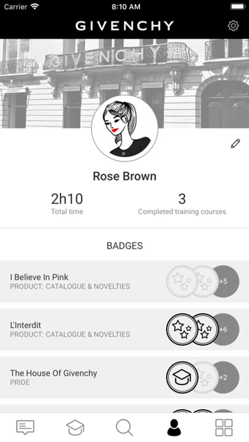 Receive notifications and updates, access to your education path, gather knowledge and win points to become a true Givenchy expert!