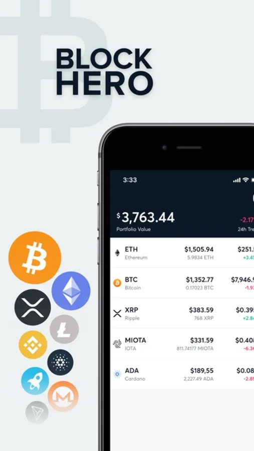 BlockHero is a beautiful, simple, and reliable app to keep track of your cryptocurrency portfolio.