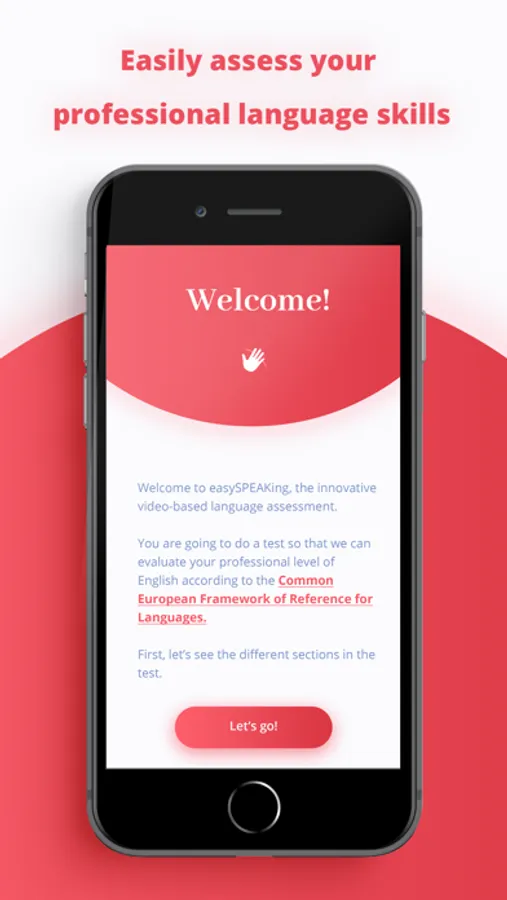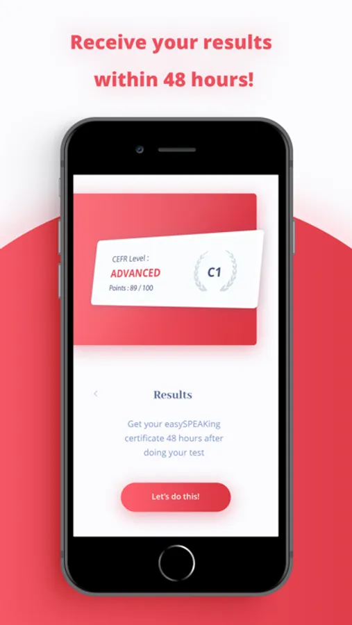 Congratulations! You’ve been invited to do a language proficiency test that will assess your speaking, listening, writing and reading skills. The easySPEAKing app is free and lets you do this test on your mobile phone wherever, whenever you like. The best part is you’ll receive your results 48 business hours after your test is complete. Are you ready?